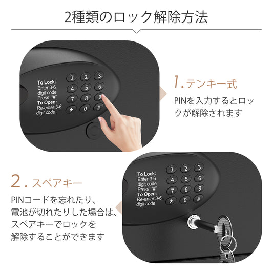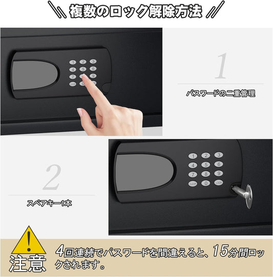 WHESWELL 金庫 防犯金庫 電子金庫 保管庫 小型 家庭用 耐火 A4 耐水 テンキー式 ミニ 30L 床・壁に固定可能 事務所 ホテル用 業務用 ブラック